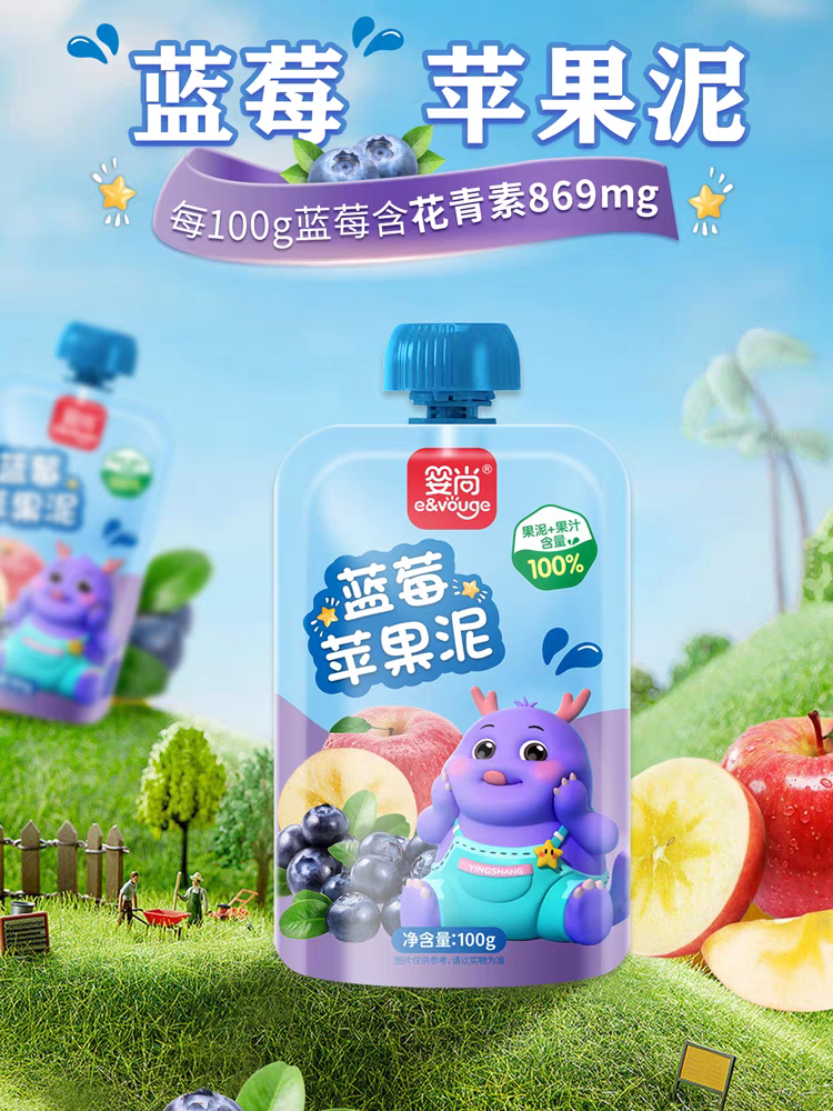 婴尚蓝莓苹果选用泥智利🇨🇱进口的苹果、蓝莓,好品质、无添加,每100g蓝莓含花青素869mg,助力宝宝视力健康发育