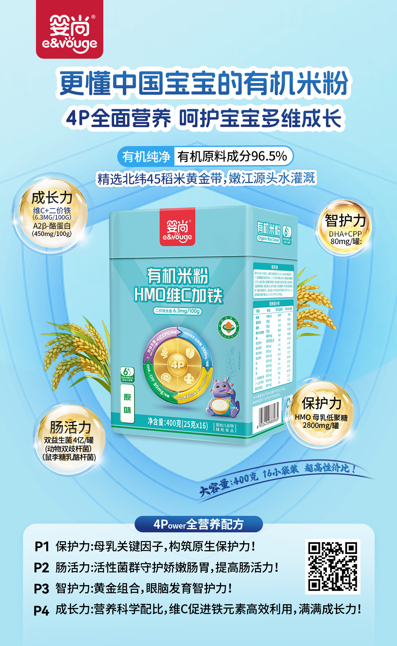 P4成长力·维C+二价铁+A2蛋白,高效补营养;
